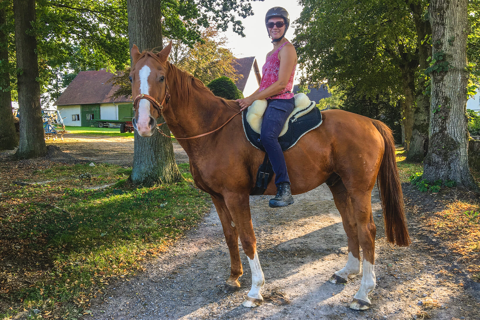 1973 wurde ich in Essen geboren und lebte dort, inmitten der Großstadt, bis es mich zum Studium nach Bielefeld und danach in immer kleinere Orte verschlug. Meine Liebe zu Tieren war schon immer in mir verwurzelt. Bereits im Kindergartenalter konnte ich meine Eltern überreden mir zumindest Goldfische zu kaufen, wenn es schon kein Hund oder Pony sein konnte. In der Grundschule schenkten mir meine Eltern in den Sommerferien meinen ersten Reitkurs. Eine Woche lang fuhr meine Mutter täglich mit mir 1 Stunde mit der Straßenbahn zum Ponyhof, wartete dort geduldig den Tag über und am späten Nachmittag ging es dann wieder zurückdachte Hause. Ich glaube, dass sie damit meine Liebe zu den Pferden endgültig besiegelt hat und ich bin ihr unendlich dankbar dafür. Darauf folgten viele Jahre, in denen ich mein Taschengeld für Reitstunden sparte, zu denen mein Vater mich, trotz Pferdehaarallergie, immer gefahren hat. Ferien auf dem Ponyhof mit einem eigenen Pflegepferd und stundenlangen Ausritten waren immer das Highlight meines Jahres. Im Studium nahm ich dann regelmäßig Reitstunden. Allerdings gab es nur wenige Gelegenheiten für Ausritte, so dass ich mich auf Halle und Platz beschränken musste.
