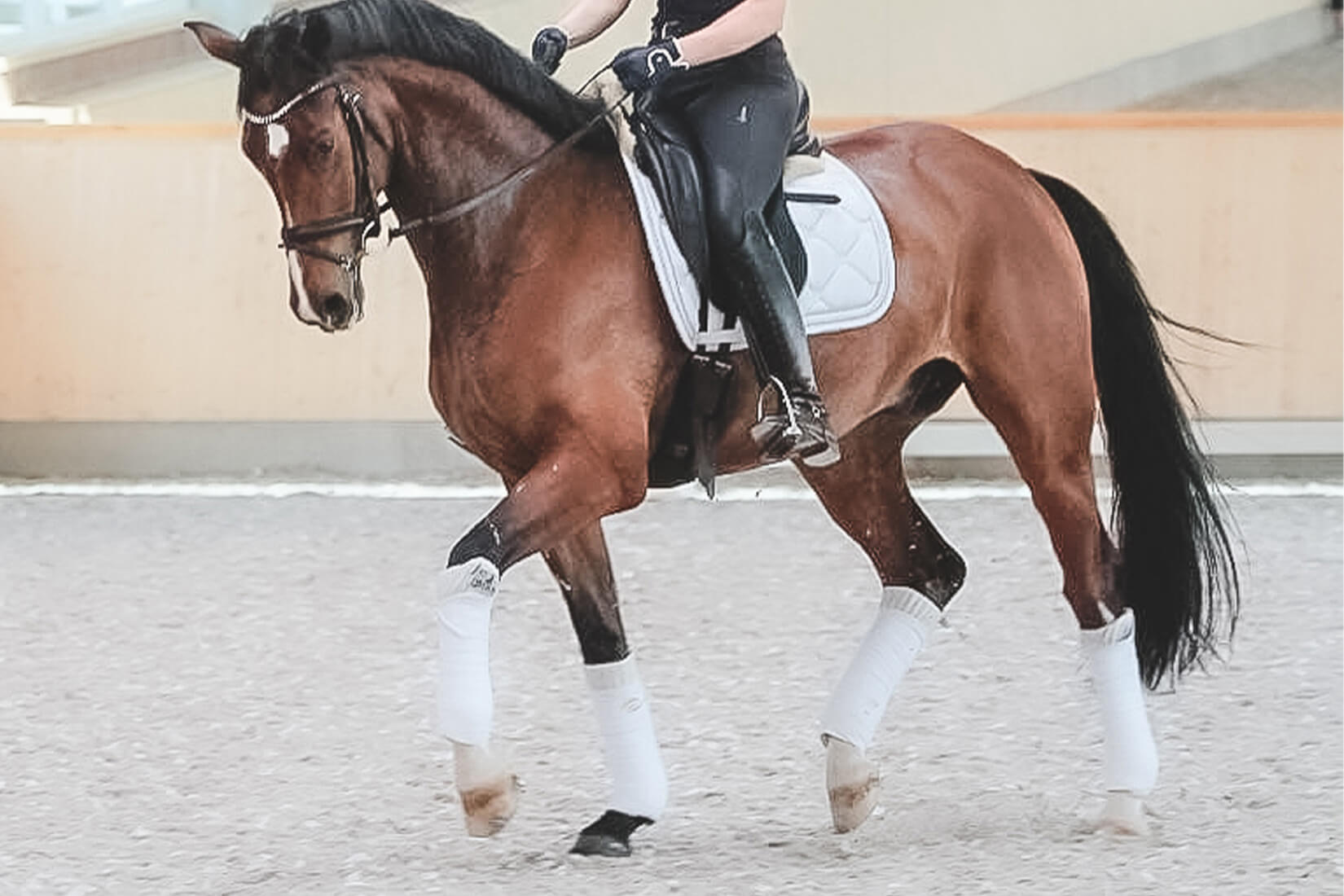 Leider hat er vorne ein Problem mit der Hufrolle bekommen. Barbara hat keine Behandlung gescheut - aber das ausschließliche und intensive Dressurtraining in Kombination mit Boxenhaltung ist einfach nichts mehr für ihn.