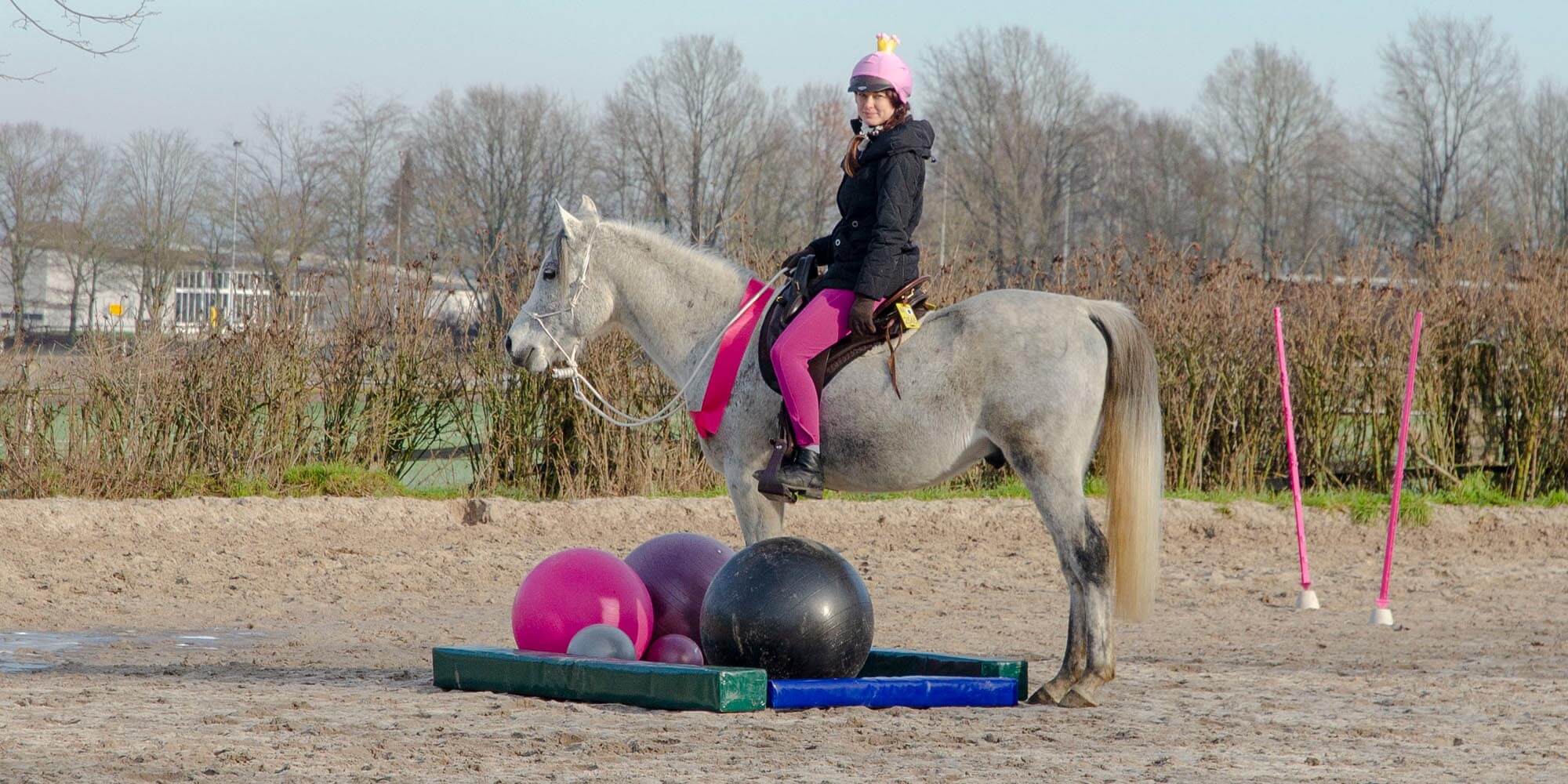 Ein Spaß für alle Anwesenden! Wie geschickt seid ihr Mädels? Dein Pferd lernt dabei gelassen zu bleiben, wenn es sich merkwürdig anmutenden Gegenständen nähern soll oder sich etwas dicht und schnell an seinem Kopf vorbei bewegt. Ihr übt gemeinsam das korrekte Anhalten an einem bestimmten Punkt und das Stehenbleiben.