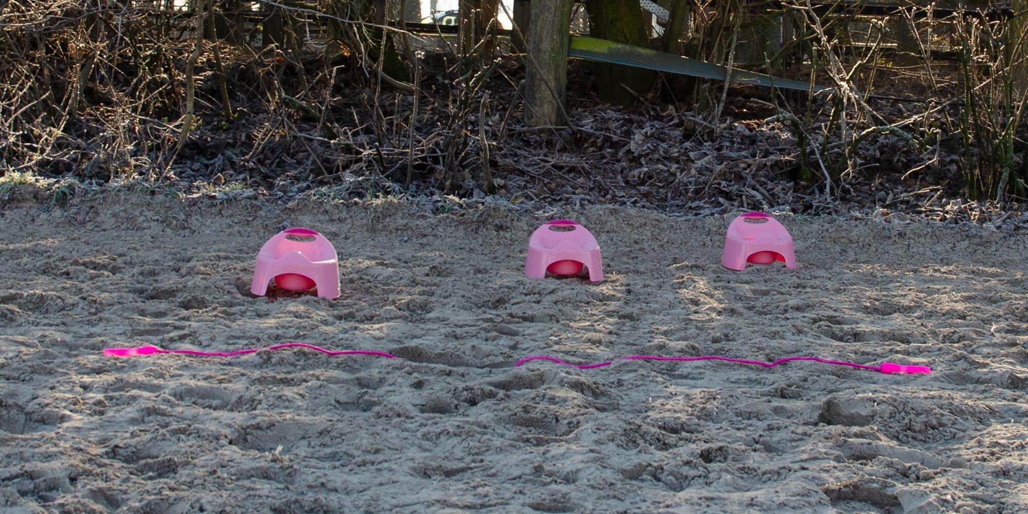Diese Station lässt sich vielfältig und mit ganz unterschiedlichen Schwierigkeitsgraden passieren. Du kannst gerade hindurch führen oder reiten. Dabei nimmst du am Eingang den Becher von einem Stab mit und setzt ihn am Ende wieder auf einen Stab drauf. So kannst du das einhändige Reiten üben und auch das korrekte Anhalten. Natürlich geht es auch umgekehrt: Du sammelt den Becher am Ende des Ganges ein und führst oder reitest dann solange rückwärts, bis du ihn am Anfang auf einen Stab stecken kannst. Beides geht natürlich auch im Slalom und in weiteren Kombinationen. Deiner Phantasie sind keine Grenzen gesetzt.