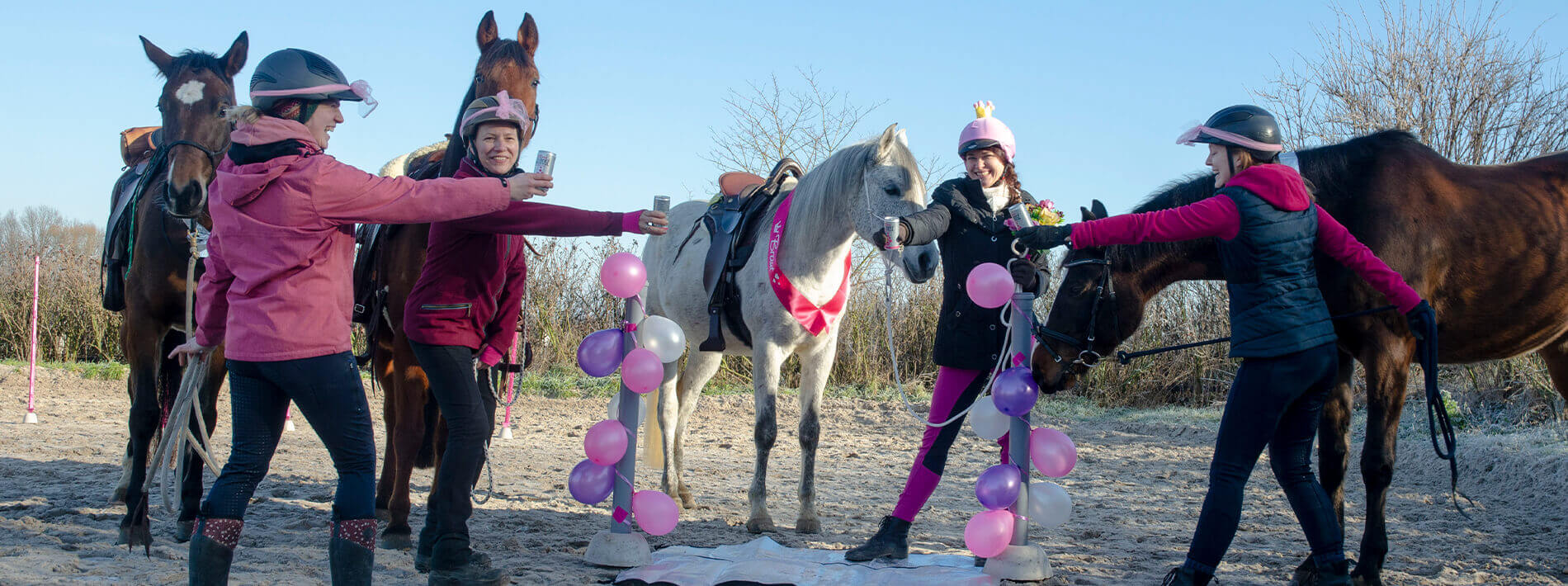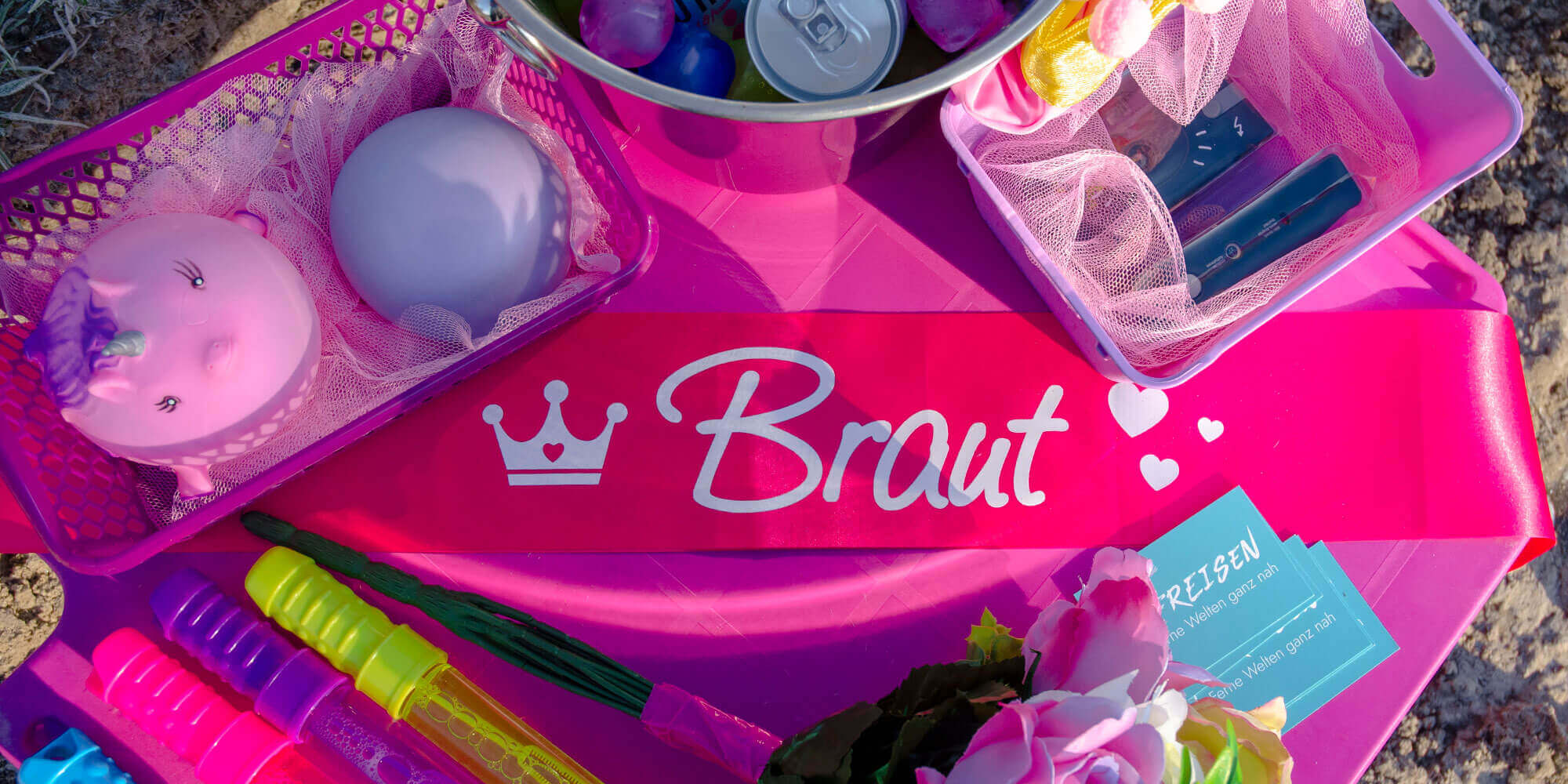 Als Extras für alle Teilnehmer:innen bekommt ihr: Seifenblasen, Schneebälle und 1x Einwegkameras sowie Schleifen und Halsbänder für alle Zwei- und Vierbeiner. Die Braut bekommt zusätzlich als Accessoires eine Krone für den Reithelm, zwei Schärpen für Braut und Pferd sowie ein Set aus pinker Schabracke und pinken Gamaschen. Prosecco gibt es für den Abschluss der Tussi-Tour.