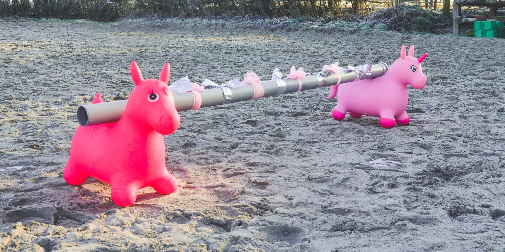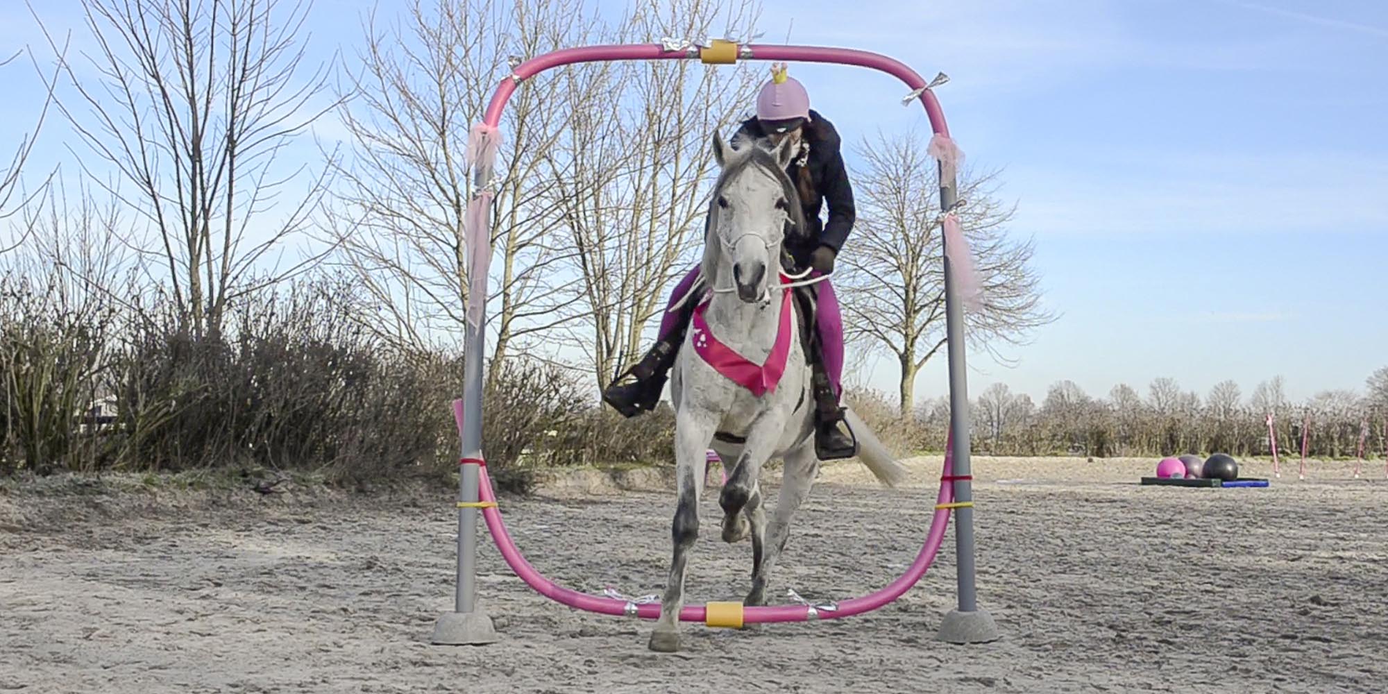 Nicht hoch, aber durch die schöne glitzernde Dekoration und die pinken Pferdchen ein echter Hingucker für dein Pferd. Dein Pferd soll nicht springen? Dann leg die Stange einfach auf den Boden.